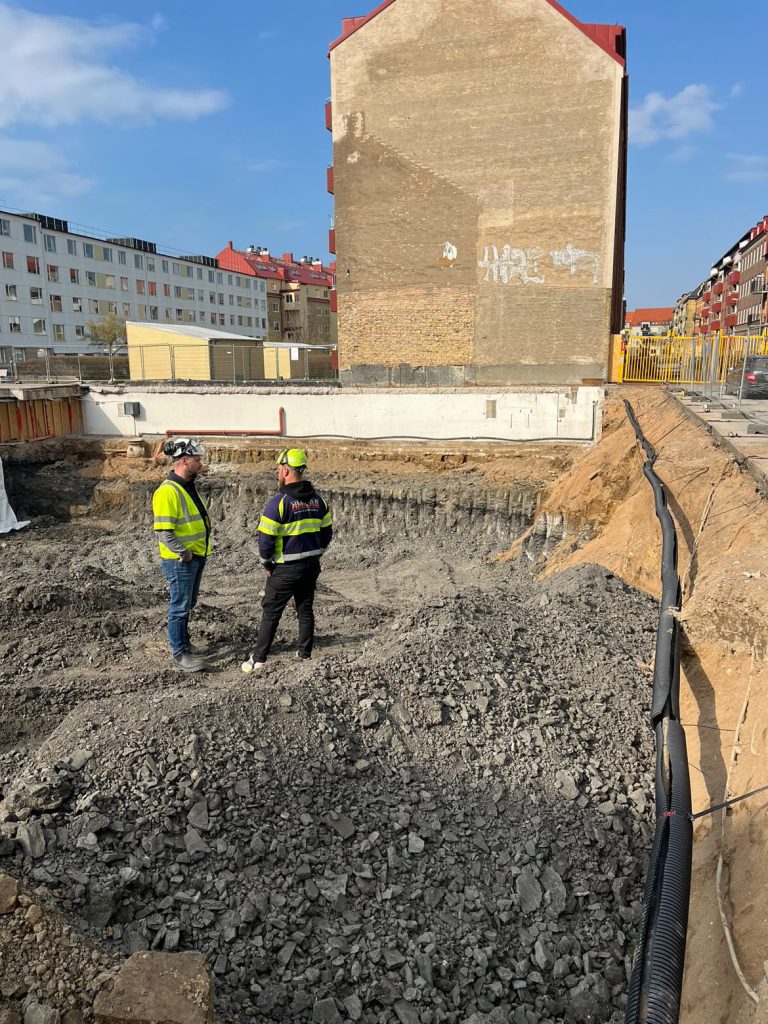 Lite bilder från Projekt kv Viktoria där vi hjälpt Daco med resurserna - arbetsledning ,maskiner , anläggare & transporter. Ett komplext projekt med sin placering mitt inne på Tågaborg , 8,5m djup , ca 15 000 ton material som ska ut från ett tight område och inte minst slänter. det är hall (berg) ca 1,5 meter ner och slänterna är godkända att arbeta vid av besiktningsman (vet att det ser galet ut).